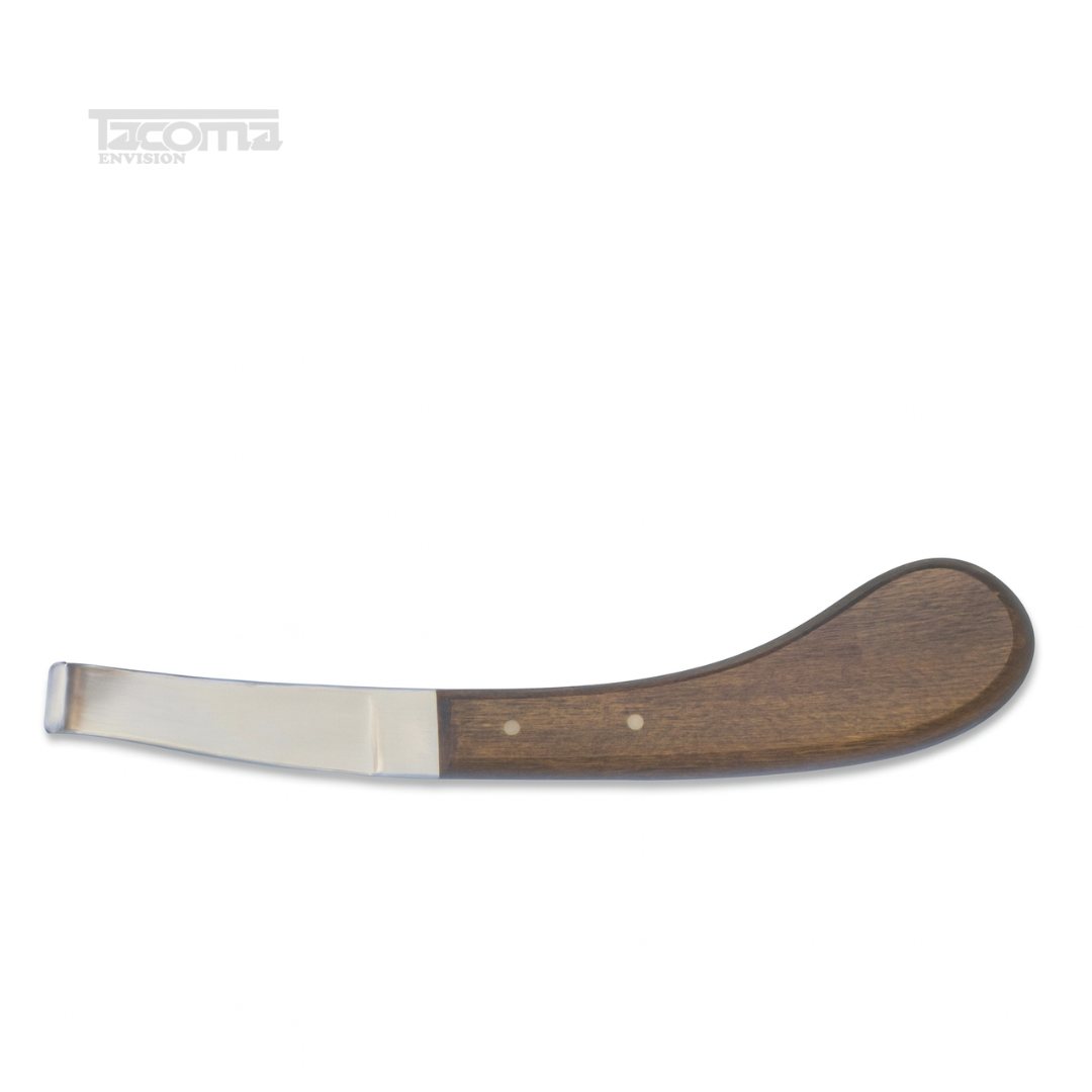 The Hoof Knife Wooden Handle with Right Edge ensures accurate, smooth hoof trimming. Made from stainless steel with a durable wooden handle for control and comfort.