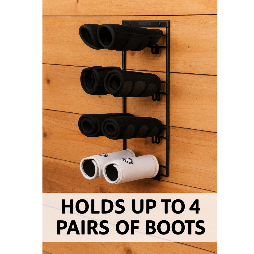 Maintain a tidy and efficient tack room with our Horse Boot Rack – Wall-Mounted Metal Rack for Drying & Organizing Horse Boots.